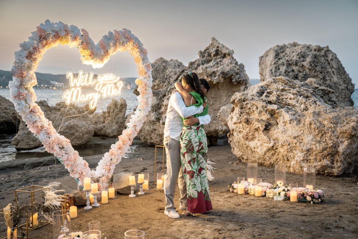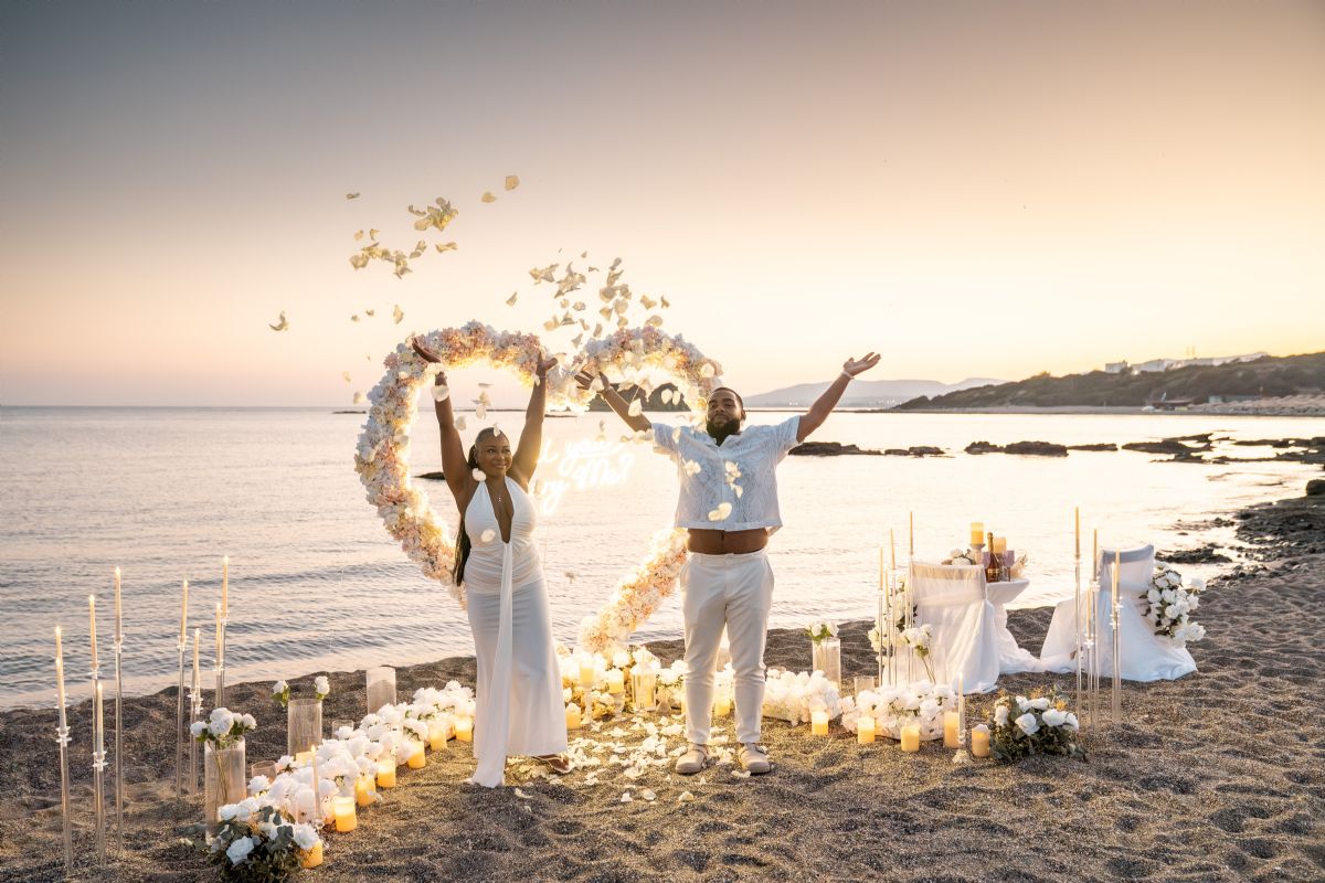 specialise in creating unforgettable wedding proposals in Rhodes, offering beautifully curated settings right by the sea. From romantic picnics on the sand to elegant decorations under the stars, each proposal in Rhodes is crafted to perfection.